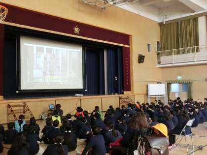 1月24日(水)から30日(火)は《給食週間》です。今週の児童集会では、給食委員会が発表を行いました。事前にとったアンケートより「聖和小学校の献立人気ランキング」のクイズを出題したり、学校給食の歴史を紹介したりしました。そのあと調理室の1日を紹介したVTRを見て、給食についての理解を深めました。