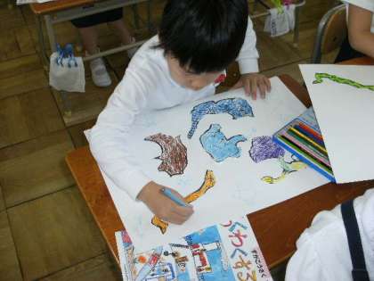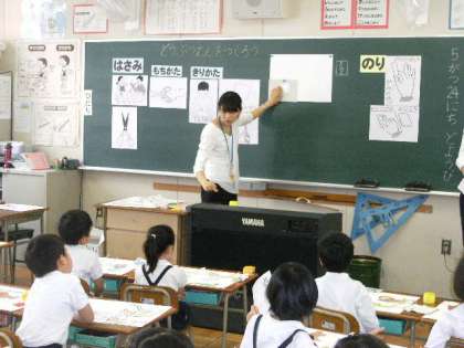 1年生では「のりとはさみのつかいかた」の学習をしていました。