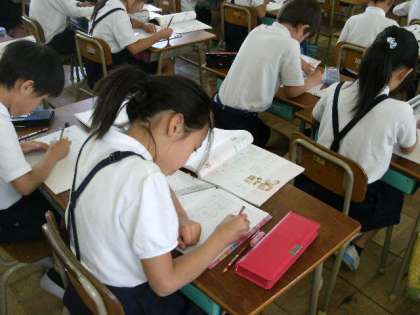 先生の話を聞いて、ひとりひとりがノートに向かってチャレンジしていました。