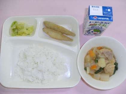 給食では初登場です。頭から骨ごと食べられる魚献立です。