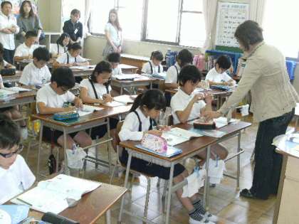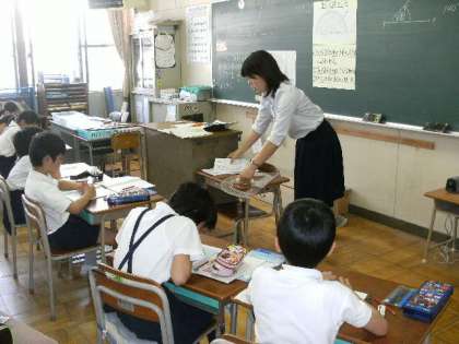 先生の話や前で行われた分度器の操作に熱心に見たり聞いたりしていました。