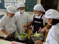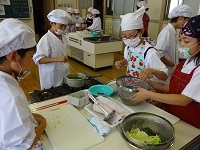 5月末、5年生では2度目の調理実習をしました。前回ゆで卵で学んだ「ゆで方」を利用して、ゆで野菜を作りました。使用した野菜は、彩りがきれいなキャベツ・ブロッコリー・プチトマトです♪班で協力をして、楽しく作ることができました!!フレンチドレッシングまで、子どもたちの手作りで、本当においしかったです☆☆