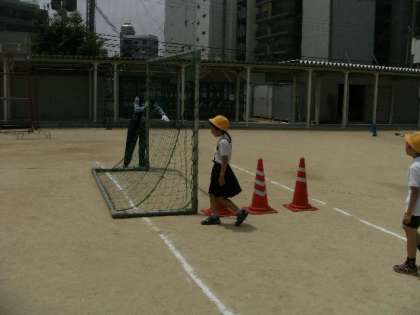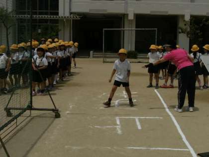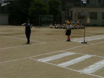 天王寺警察から婦人警官さんが2名来られ、聖和小学校の運動場で交通安全指導がありました。