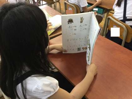 「っ」の学習をしました。先生の後に続いて大きな声で教科書を読んでいました。