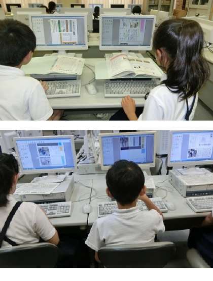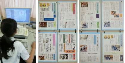 学習したことや体験したことなどの感想をパソコンを使って新聞にまとめています。