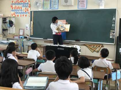 1時間目に絵本の読み聞かせをしました。