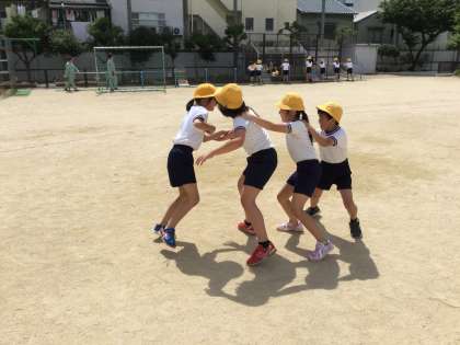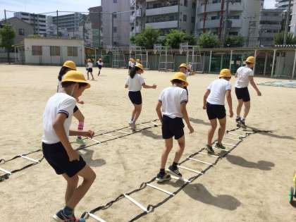 5年生は、「キャッチボール」、「鉄棒」、「ムカデ退治」、「ラダー」を行っています。
