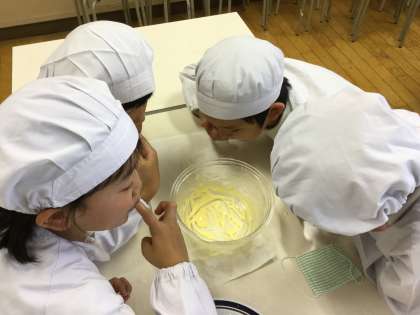 まずマヨネーズについて教えていただき、その後自分たちでマヨネーズを作りました。