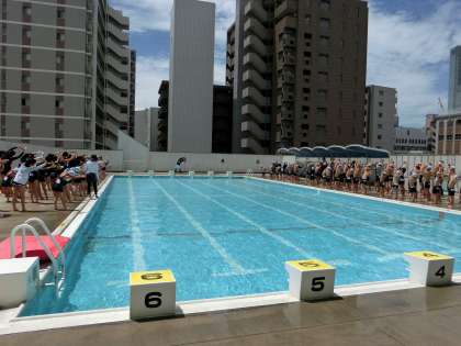 27日(水)、待ちに待った1年生のプール開きがありました(*^_^*)小学校生活初めてのプールは、6年生のお兄さん・お姉さんが優しく見守ってくれました♪シャワーのあび方・入水の仕方・もぐり方などいろいろなことを先生や6年生に教わりました!「気持ちいい!」「楽しい!」と初めてのプールに大喜びの1年生でした(^O^)これからのプール学習も楽しみです♪