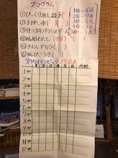 くじ引きでどの種目に誰が出るのか決めてから、班対抗戦をしました。