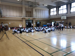 無事に学校へ到着し、講堂で修学旅行の帰校式を行いました。代表児童がみんなの気持ちを代弁して、立派に挨拶をしていました。保護者の皆様にはお忙しい中出迎えにも来ていただきありがとうございました。これで6年生修学旅行関係のホームページ更新を終了いたします。多数のアクセスありがとうございました。