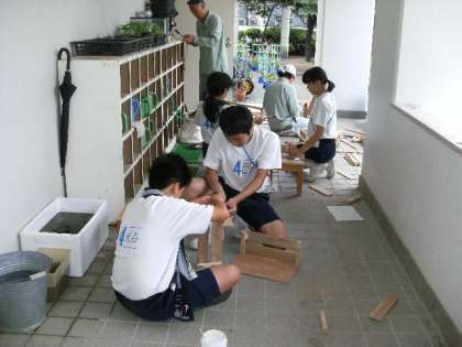 今日は、小学校で使う足場などの木工での工作作業をしていました。