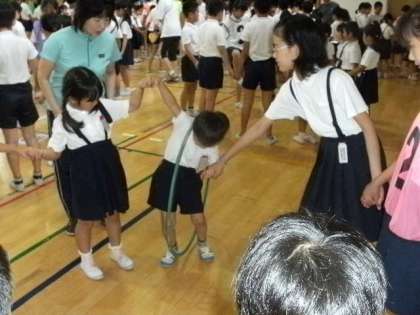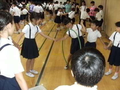 集会委員会が毎週木曜日に行うゲームは、にこにこ班のみんなが仲良く触れ合えるゲームです。