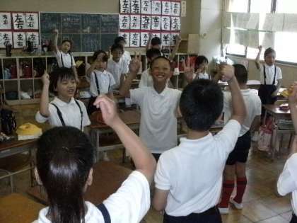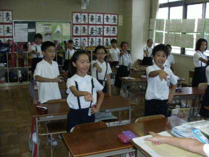 どの子も笑顔いっぱいで、とても大きな声で歌っています。4年生の教室では、歌に合わせて楽しいダンスをしていました。