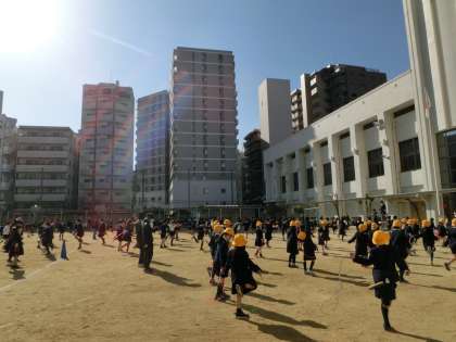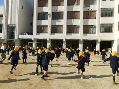 児童全員が運動場へ出て,なわとびをします。