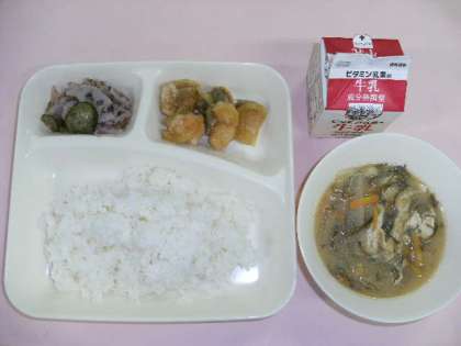平成29年度の学校給食献立コンクール優秀賞をもとにした献立です。児童が考えた献立のねらいは、「寒い冬に体があたたまり、海そうや野菜をおいしくたくさん取れるようにしました」となっています。