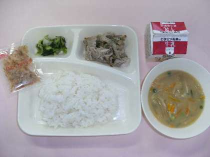 こまつなと白菜をおひたしにしています。食べる前にかつおぶしをかけることで、風味を増しています。
