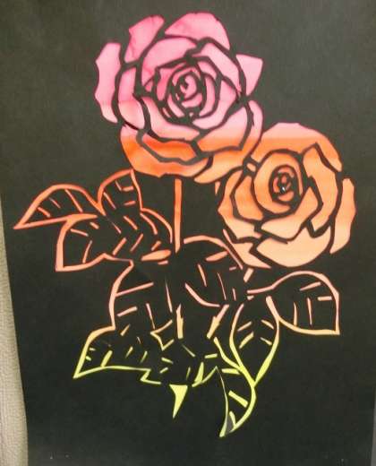 5年生では、木版画の後、短い時間ですが切り絵に取り組みました。