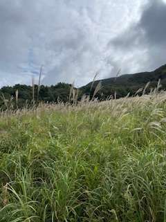 しばらく歩いて、何とヘビのミイラを発見しました!!みんな興味深々です!ススキの絶景も素敵(^o^)