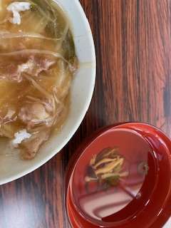 宿舎でのお昼ご飯は、中華丼とすまし汁でした。感謝していただきます!