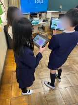 算数では色板を使ってかたちをつくる学習をしています。自分で考えたかたちをタブレッ...