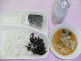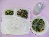 6月29日(月) ●さごしの塩焼き ●みそ汁 ●牛ひじきそぼろ ●ごはん ●牛乳...