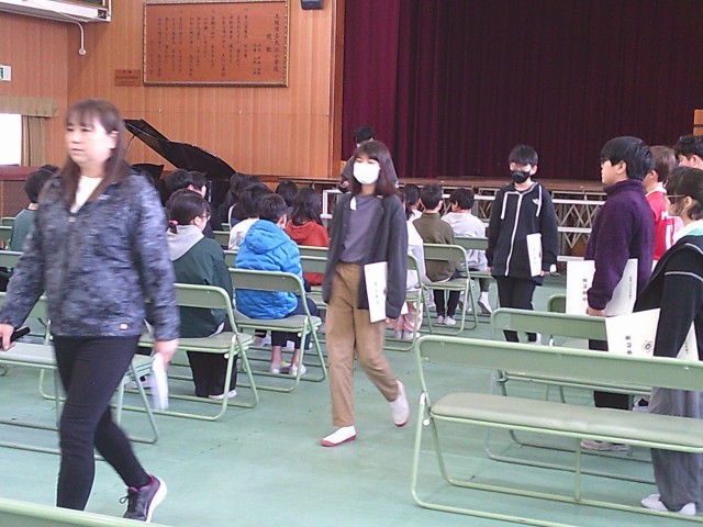 6年生は体育館での「卒業式練習」をしていました。