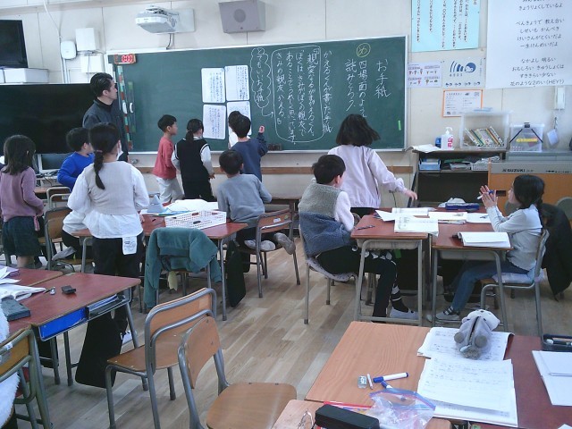 今日、4年生は地域の方にゲストティーチャーとしてお越しいただき、俳句の学習をしました。この1年間を振り返り、4年生の思い出を俳句に詠みます。