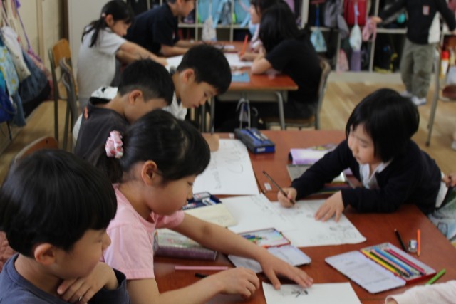 1年生と2年生で実施する学校探検に向けて、2年生が準備をしています。1年生が困らないようにしたいなと言いながら、案内表示を作成していました。