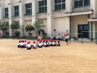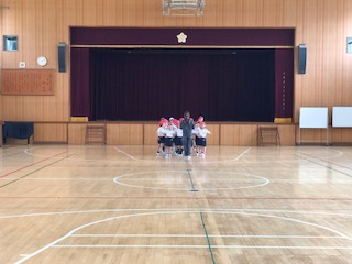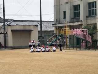 →体育の授業を運動場と体育館で行なっていました。