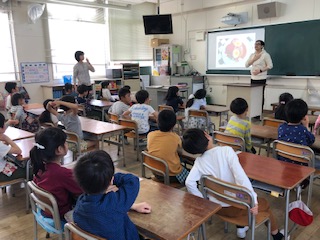 →ネイティブスピーカーのダニー先生と一緒に、外国語活動の授業を行いました。楽しく取り組むことができました。