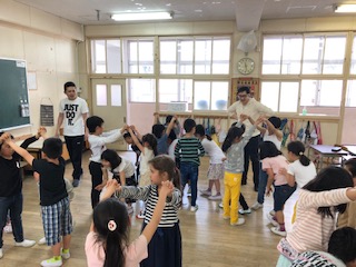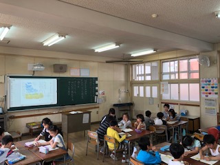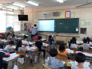 →外国語活動、算数、国語の学習を行なっていました。
