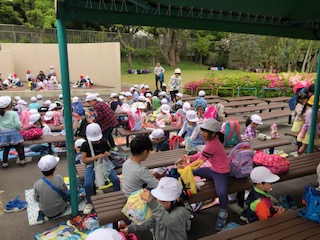 一旦園内見学を終えて、昼食をとります。たくさん歩きましたが、まだまだ元気いっぱいです。