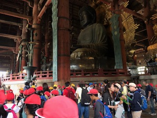 大仏殿に入りました。なにもかもが大きくて立派です。思わずため息が…。すごい。
