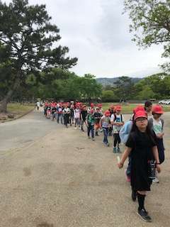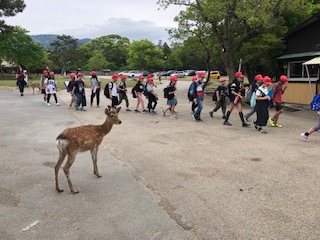 天候の心配があるので、予定より少し早めに若草山を出発しました。幸いに雨は降っていません。
