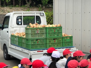 →たくさんの玉ねぎが収穫できました。お土産として持ち帰りますので、楽しみにしておいてくださいね。