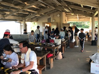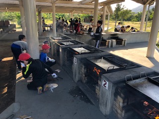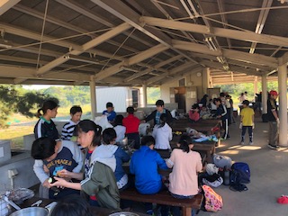→野外炊飯で、鉄板焼きをしました。お肉、ウィンナー、焼き野菜、どれも美味しくてお腹いっぱいになりました。みんなで協力して作った料理は最高です!