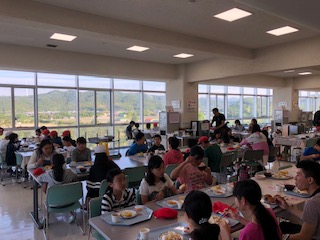 →朝からしっかりと栄養をとって、最終日も元気に笑顔で頑張ります!清掃・退所準備の後、最後の活動の「ストーンペインティング」です。