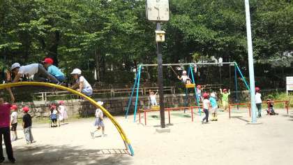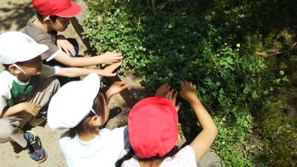→1年生が上汐公園に「公園たんけん」に出かけました。公園内では初夏の様子を熱心に観察していました。