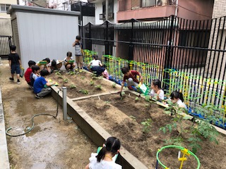 →学習園で育てている「なすび」の観察をしていました。細かい所まで丁寧に記録する姿に感心しました。
