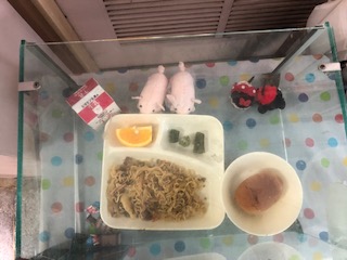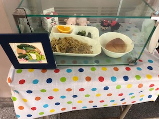 焼きそば、オクラのかつお梅風味、オレンジ、1/2パン、牛乳