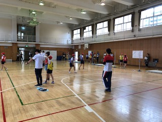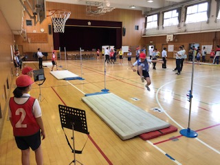 →5時間目の6年体育「走り高跳び」の様子です。区の体育部および校内の研究授業として行われました。