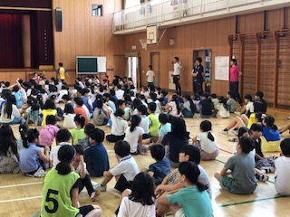 →「ステレオゲーム」をしました。班のメンバーと協力してチャレンジしていました。
