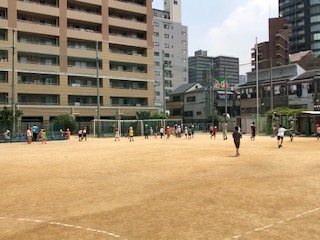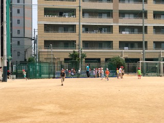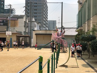 →運動場で元気に過ごしています。暑さが厳しくなってきています、こまめに水分補給をするように声かけをしています。