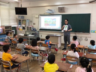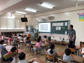 →外国語活動の授業が行われていました。「イエロー、グリーン、…」と大きな声が響いていました。