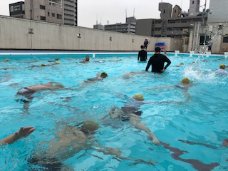 →今週の月曜日と火曜日は天候が悪く、一部の学年しかプールに入れていませんでした。今日は曇り空ですが気温が高く、1〜3年生の水泳学習を行うことができました。※写真は3年生の活動の様子です