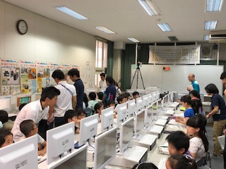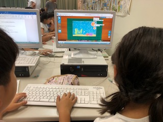 →5時間目の総合的な学習の時間に、プログラミングの学習を行いました。「プログラミン」というコンテンツを利用して活動を進めました。