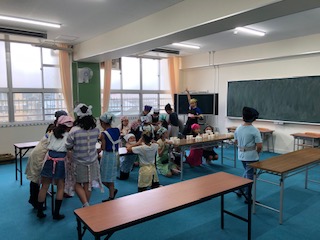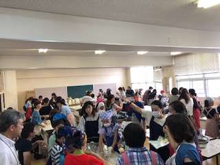 →6時間目に家庭科室にて、5年生PTC集会「ポップコーン作り」が行われました。手作りポップコーンに子どもたちはみな大よろこびでした。ご参加、ご協力いただいた保護者の皆様、暑い中(ホントに暑かった…申し訳ありません)ありがとうございました。