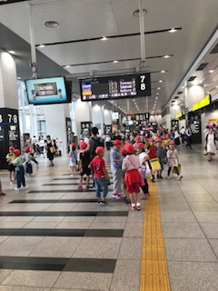 →JR大阪駅構内での班活動を行なっています。熱心に取り組んでいます。