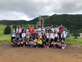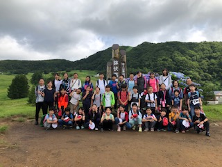 →登山の前にモニュメントの前で集合写真を撮りました。